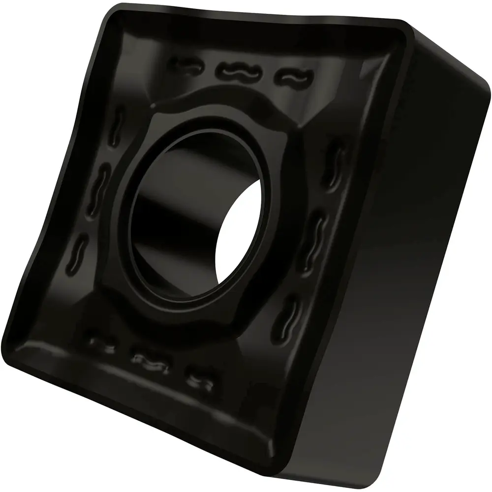 Двусторонняя негативная токарная пластина, квадратная с диаметром вписанной окружности 12,7 мм, толщиной 4,76 мм, радиусом при вершине 0,8 мм, точностью индексации в соответствии с классом допуска ISO-M, стружколомом NR2 со скругленными режущими кромками, из сплава T7325, функционально-градуированного твердого сплава WC-Co с покрытием MT-CVD в диапазоне ISO M10 - M25, для средней и сверхтяжелой обработки нержавеющих сталей.