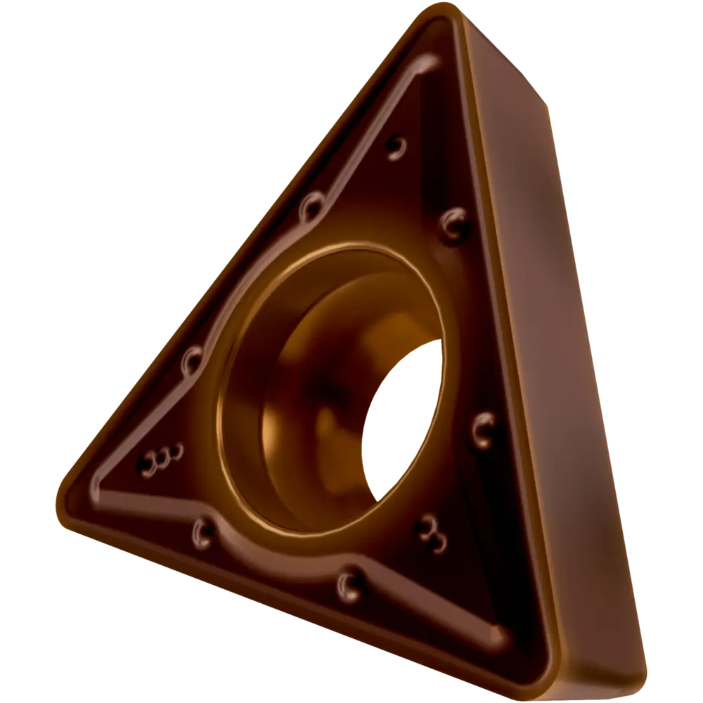 Односторонняя позитивная токарная пластина, треугольная с зазором 7°, диаметр вписанной окружности 9,525 мм, толщина 3,97 мм, радиус вершины 0,8 мм, точность индексации в соответствии с классом допуска ISO-M, стружколом RM со скругленными режущими кромками, из сплава T8430, мелкозернистого твердого сплава WC-Co с покрытием PVD в диапазонах ISO P20 -P40 и M20 -M35, для чистовой и тяжелой обработки сталей и нержавеющих сталей.
