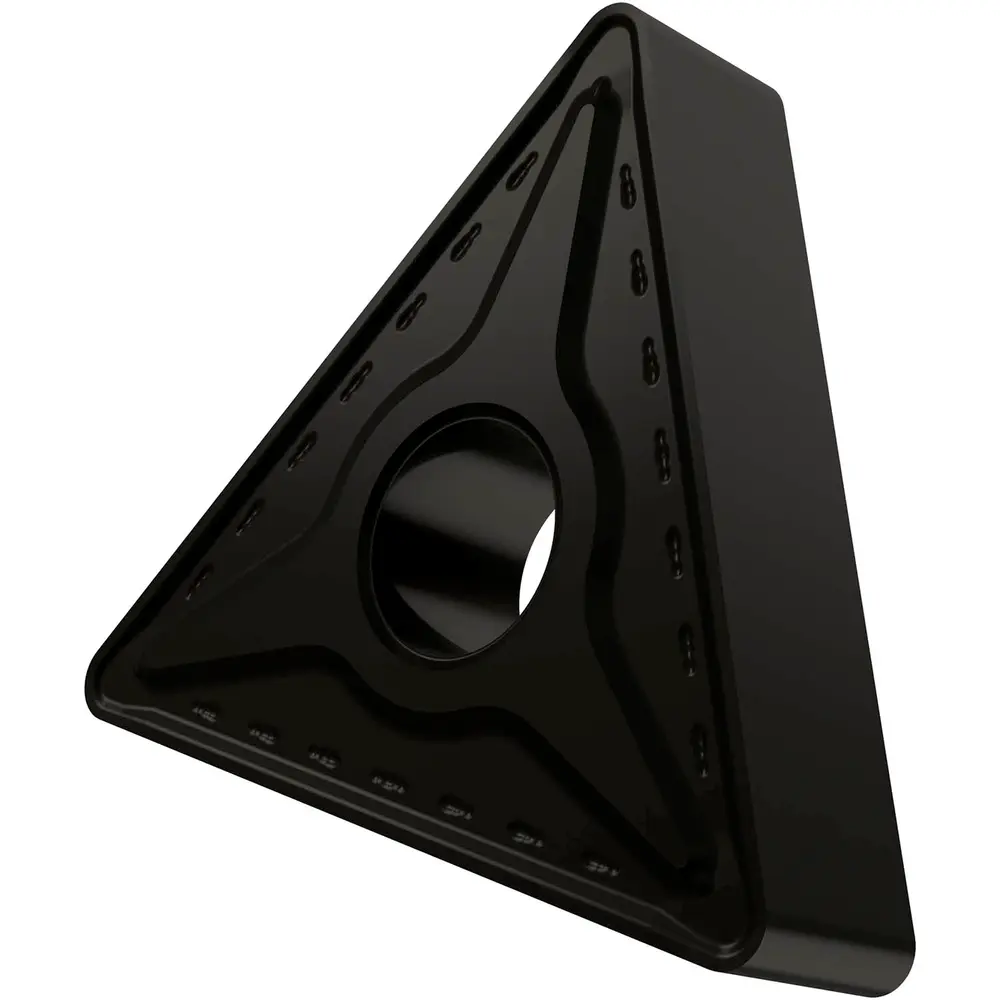 Двусторонняя негативная токарная пластина, треугольная с диаметром вписанной окружности 15,875 мм, толщиной 6,35 мм, радиусом при вершине 1,2 мм, точностью индексации в соответствии с классом допуска ISO M, стружколомом RM со скругленными режущими кромками, из сплава T7325, функционально-градуированного твердого сплава WC-Co с покрытием MT-CVD в диапазоне ISO M10 - M25, для средней и тяжелой обработки нержавеющих сталей.