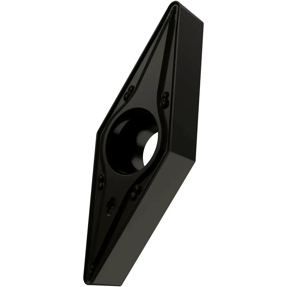 Односторонняя позитивная токарная пластина, ромбовидная 35° с зазором 5°, диаметр вписанной окружности 9,525 мм, толщина 4,76 мм, радиус вершины 0,8 мм, точность индексации в соответствии с классом допуска ISO-M, стружколом RM со скругленными режущими кромками, из сплава T7335, функционально-градуированного твердого сплава WC-Co с покрытием MT-CVD в диапазоне ISO M20 - M40, для чистовой и тяжелой обработки нержавеющих сталей