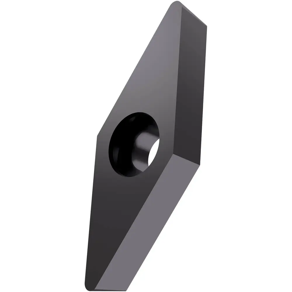 Односторонняя позитивная токарная пластина, ромбовидная 35° с зазором 7°, диаметром вписанной окружности 6,35 мм, толщиной 3,18 мм, радиусом при вершине 0,4 мм и точностью индексации в соответствии с классом допуска ISO-M, из сплава T6310, сверхмелкозернистого твердого сплава WC-Co с покрытием PVD в диапазоне ISO K05 -K20, для тонкой обработки чугуна.