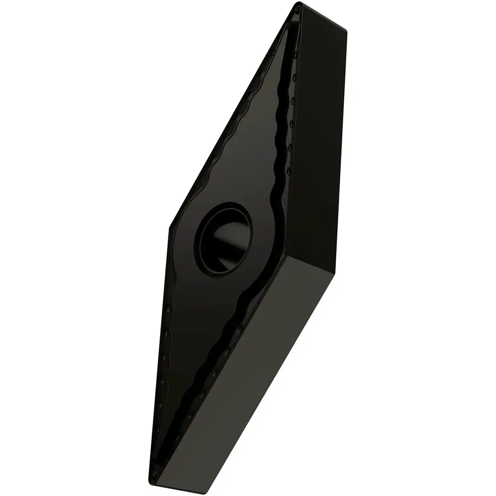 Двусторонняя негативная токарная пластина, ромбовидная 35° с диаметром вписанной окружности 9,525 мм, толщиной 4,76 мм, радиусом при вершине 0,4 мм, точностью индексации в соответствии с классом допуска ISO-M, стружколомом FF со скругленными режущими кромками, из сплава T7325, функционально-градуированного твердого сплава WC-Co с покрытием MT-CVD в диапазоне ISO M10 - M25, для тонкой обработки нержавеющих сталей.