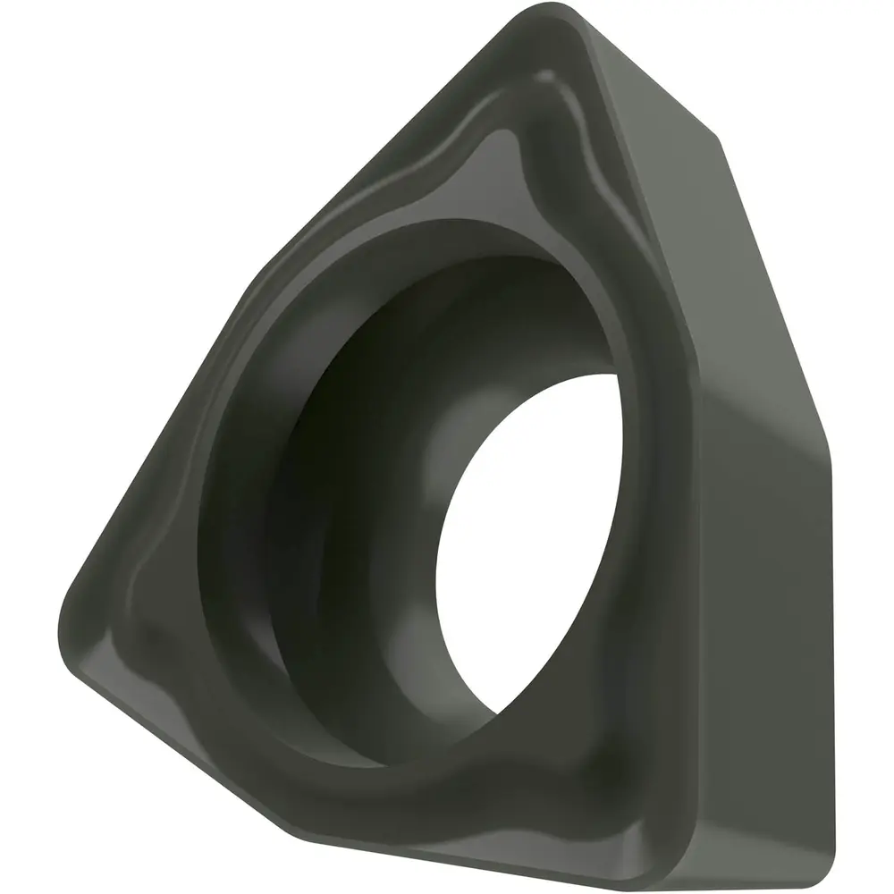 Односторонняя позитивная токарная пластина, 80° тригон с зазором 7°, диаметр вписанной окружности 3,97 мм, толщина 1,59 мм, радиус вершины 0,4 мм, точность индексации в соответствии с классом допуска ISO-G, стружколом FF2 со скругленными режущими кромками, из сплава TT010, непокрытого кермета в диапазоне ISO P01 -P10, для чистовой и получистовой обработки сталей
