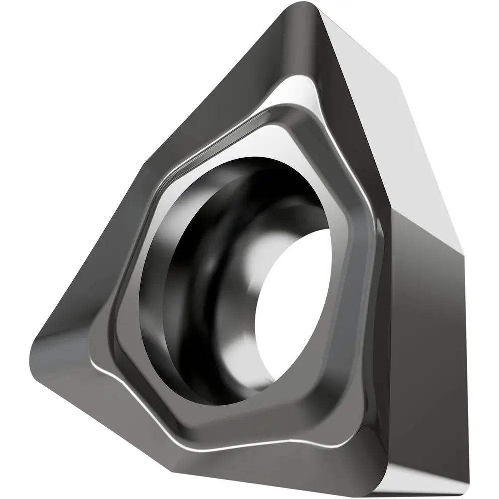 Односторонняя позитивная токарная пластина, 80° тригон с зазором 7°, диаметр вписанной окружности 9,525 мм, толщина 3,97 мм, радиус вершины 0,2 мм, точность индексации в соответствии с классом допуска ISO-G, стружколом AL с острыми режущими кромками, из сорта HF7, мелкозернистый карбид WC-Co без покрытия в диапазоне ISO N10 - N25, для чистовой и тяжелой обработки цветных металлов.