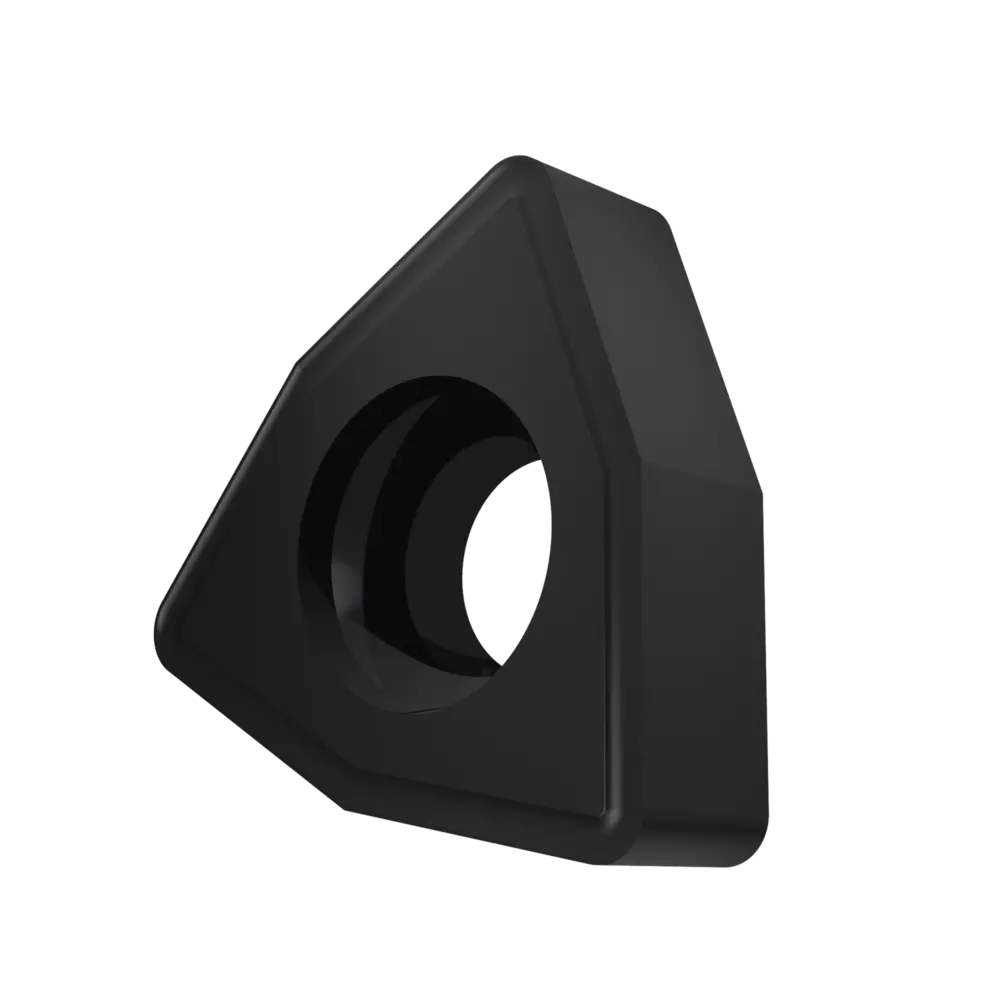 Односторонняя позитивная токарная пластина, тригон 80° с зазором 7°, диаметр вписанной окружности 12,7 мм, толщина 4,76 мм, радиус вершины 1,2 мм, точность индексации в соответствии с классом допуска ISO M, стружколом RF со скругленными режущими кромками, из сплава T7335, функционально-градуированного твердого сплава WC-Co с покрытием MT-CVD, для чистовой и тяжелой обработки