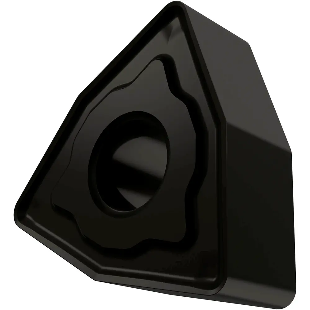 Двусторонняя негативная токарная пластина, 80° тригон с диаметром вписанной окружности 9,525 мм, толщина 4,76 мм, радиус вершины 1,2 мм, точность индексации в соответствии с классом допуска ISO-M, стружколом NM со скругленными режущими кромками, из сплава T7335, функционально-градуированного твердого сплава WC-Co с покрытием MT-CVD в диапазонах ISO M20 - M40 и S15 - S25, для чистовой и тяжелой обработки нержавеющих сталей и суперсплавов.