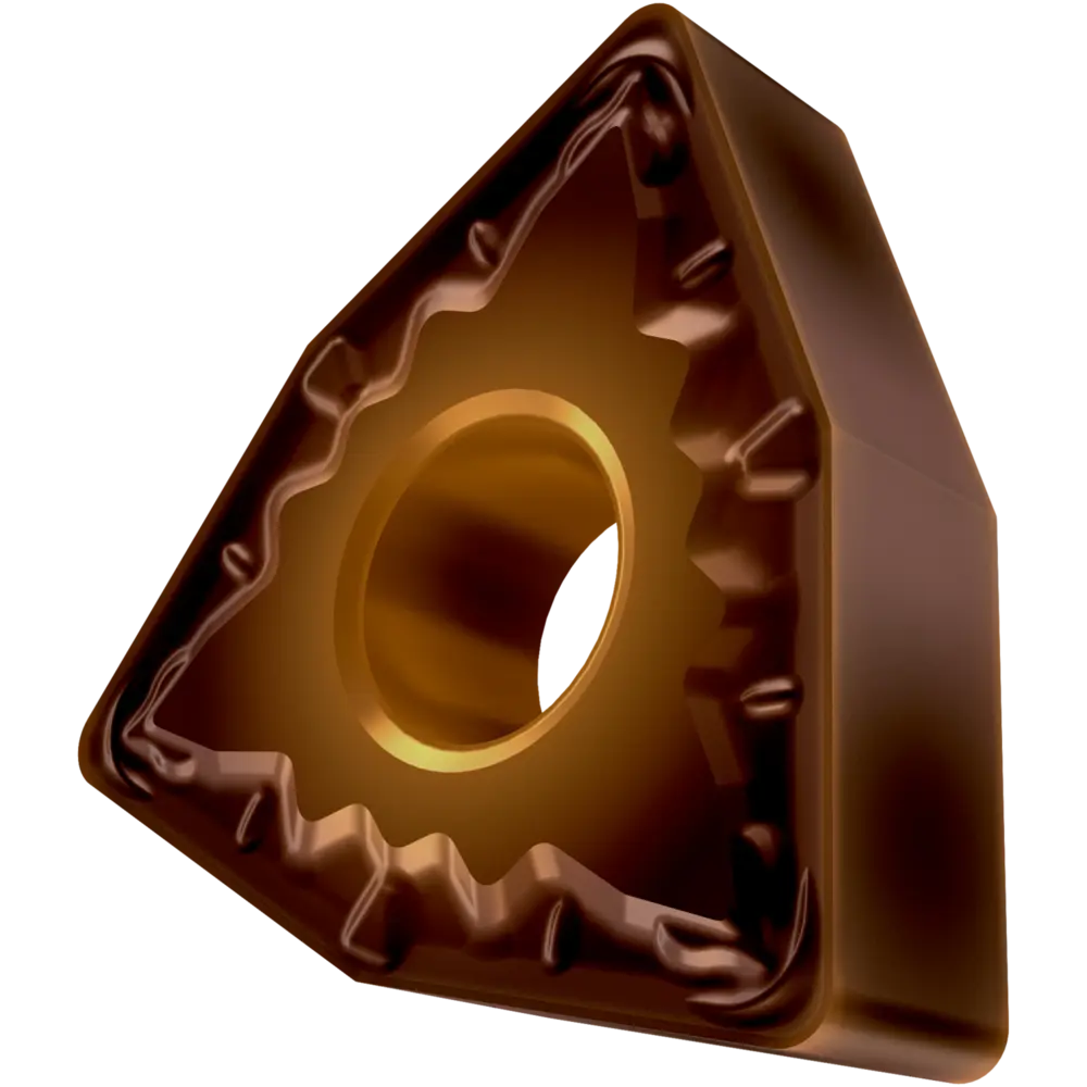 Двусторонняя негативная токарная пластина, 80° тригон с диаметром вписанной окружности 12,7 мм, толщина 4,76 мм, радиус вершины 1,2 мм, точность индексации в соответствии с классом допуска ISO M, стружколом FM со скругленными режущими кромками, из сплава T8430, мелкозернистого твердого сплава WC-Co с покрытием PVD в диапазоне ISO P20 -P40, для чистовой и средней обработки сталей.