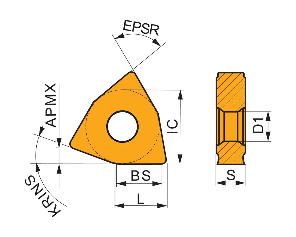 Двусторонняя негативная пластина для зачистки прутка, треугольная пластина 80° с диаметром вписанной окружности 31,75 мм, толщина 14 мм для глубины резания 8 мм, точность индексации в соответствии с классом допуска ISO-M, стружколом PR, из сплава T9226, функционально-градуированного твердого сплава WC-Co с покрытием MT-CVD в диапазоне ISO P15 -P35, для сталей