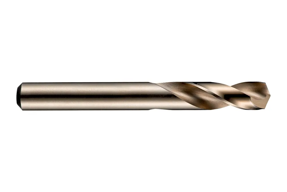Сверло короткое с прямым хвостовиком, диаметром 7,8 мм, общей длиной 79 мм и длиной канавки 37 мм в соответствии со стандартом DIN 1897 с вершиной, заточенной под углом 135°, из быстрорежущей стали HSS-E на основе кобальта с бронзовым покрытием для сверления отверстий диаметром 2,5xD без вывода сверла в нержавеющей стали и суперсплавах