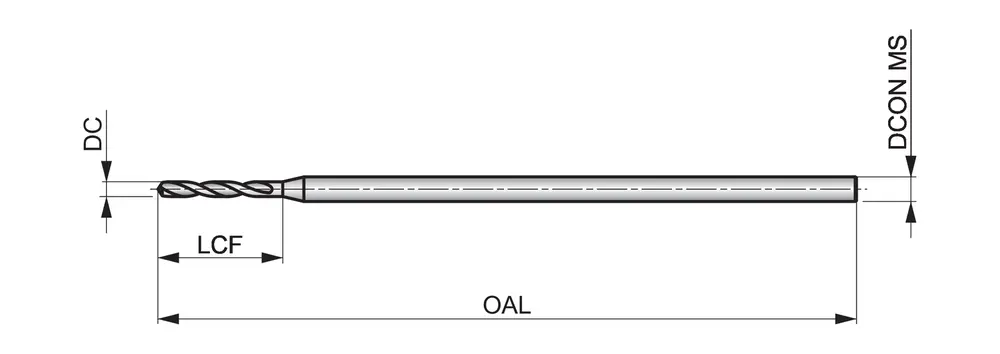 Микросверло с прямым хвостовиком, диаметром 0,15 мм, общей длиной 25 мм и длиной канавки 1 мм в соответствии со стандартом DIN 1899 с углом при вершине 118°, из быстрорежущей стали HSS-E на основе кобальта с блестящей поверхностью для сверления 2,5xD без выбивания отверстий в стали