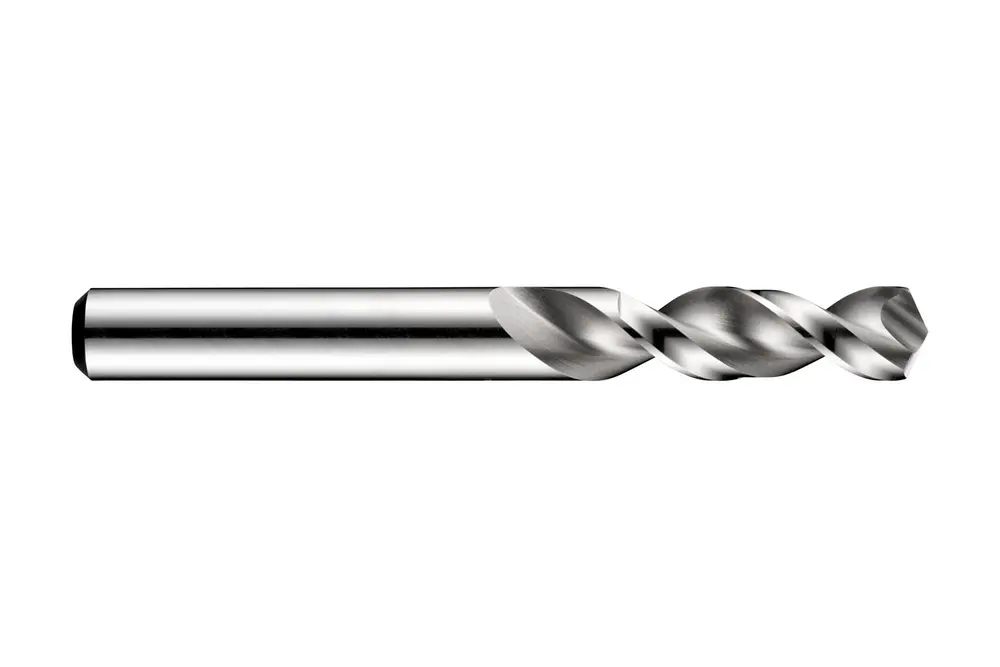 Сверло PFX короткой длины с прямым хвостовиком, диаметром 2,5 мм, общей длиной 43 мм и длиной канавки 14 мм в соответствии со стандартом DIN/ANSI с углом при вершине 130°, из быстрорежущей стали HSS-E на основе кобальта с блестящей поверхностью, быстрозакручивающейся спиралью и параболической перемычкой для сверления отверстий в стали, нержавеющей стали и суперсплавах без вывода сверла.