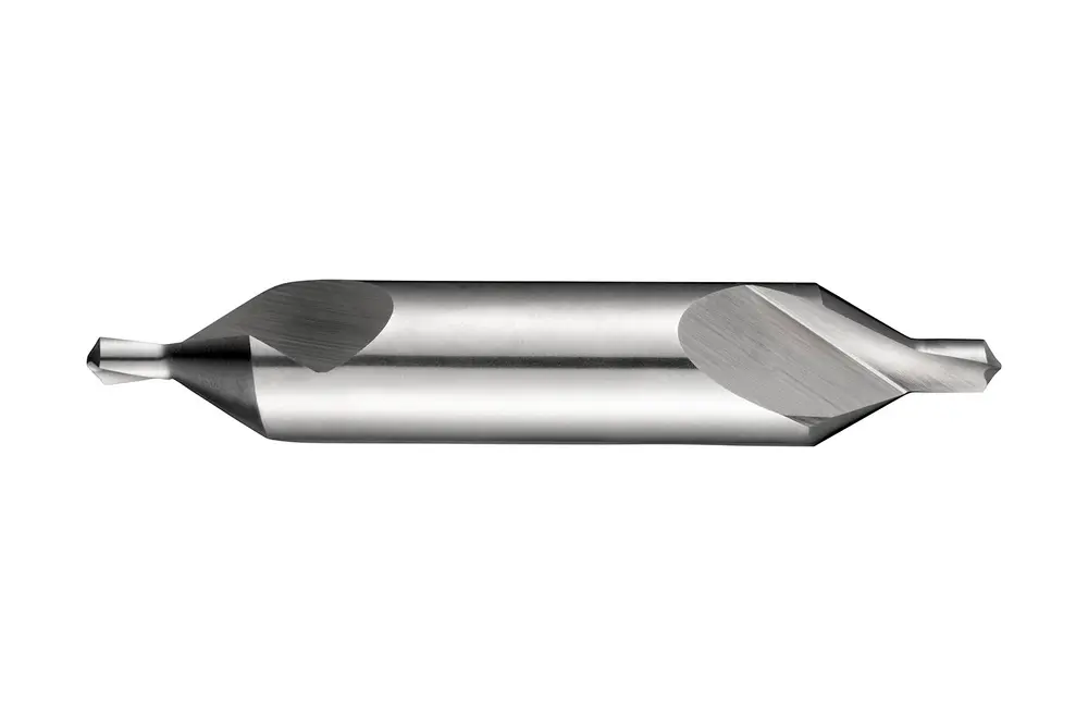 Центровочное сверло (комбинированное сверло и зенковка) с прямым коническим сечением 60°, двухсторонним цилиндрическим корпусом, диаметром сверла 1,00 мм, диаметром корпуса 4,00 мм и общей длиной 35 мм, в соответствии со стандартом Dormer Pramet для изготовления стандартизированных центровых отверстий согласно DIN 332 часть 1 форма A, из быстрорежущей стали с блестящей отделкой для обработки на станке без механического воздействия, обычной углеродистой и легированной стали, а также серого чугуна.