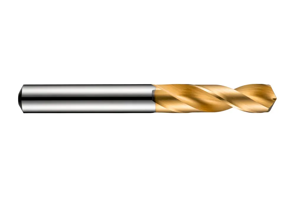 Высокопроизводительное сверло CDX с прямым хвостовиком, диаметром 4,2 мм, общей длиной 55 мм и длиной канавки 22 мм в соответствии со стандартом DIN 6539 с 4-гранной спиральной вершиной 130°, цельное твердосплавное с покрытием TiN для сверления на глубину 2,5xD без вывода сверла в стали, чугуне и цветных металлах